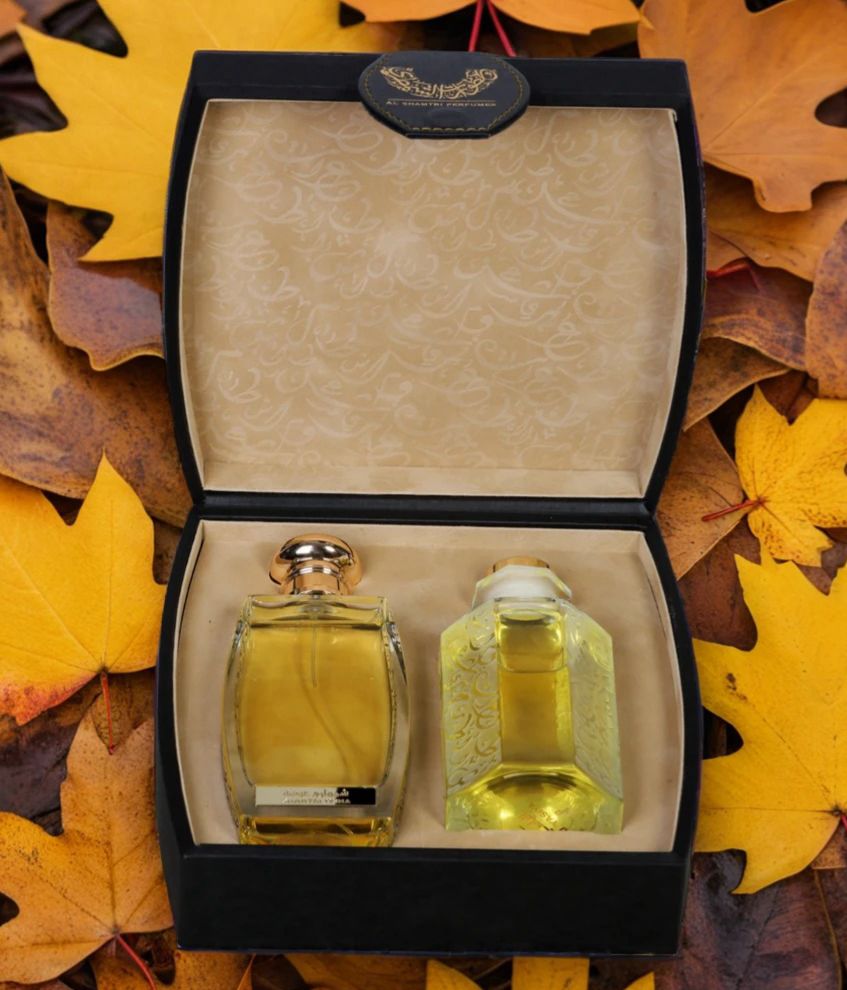 صندوق العطور الراقي من مجموعة عطور الشمطري ،تستطيع اختيار ثلاث عطور مفضلة لديك .